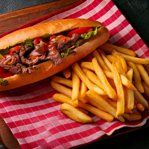 Délicieux steak tranché, grillé à la perfection et servi dans un pain frais avec garnitures au choix. 7” : $8.99 14” : $12.99